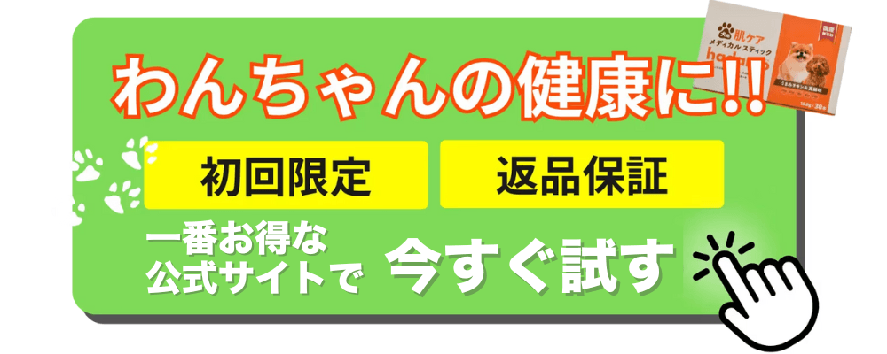 しかし、メディカルスティック hadamoは、このような症状を予防するために開発された商品であり、豊富な栄養素でわんちゃんの皮膚の健康に必要なサポートをしてくれます。皮膚そのものの健康だけでなく、免疫力をサポートしてくれる成分が入っていることもポイントですね。